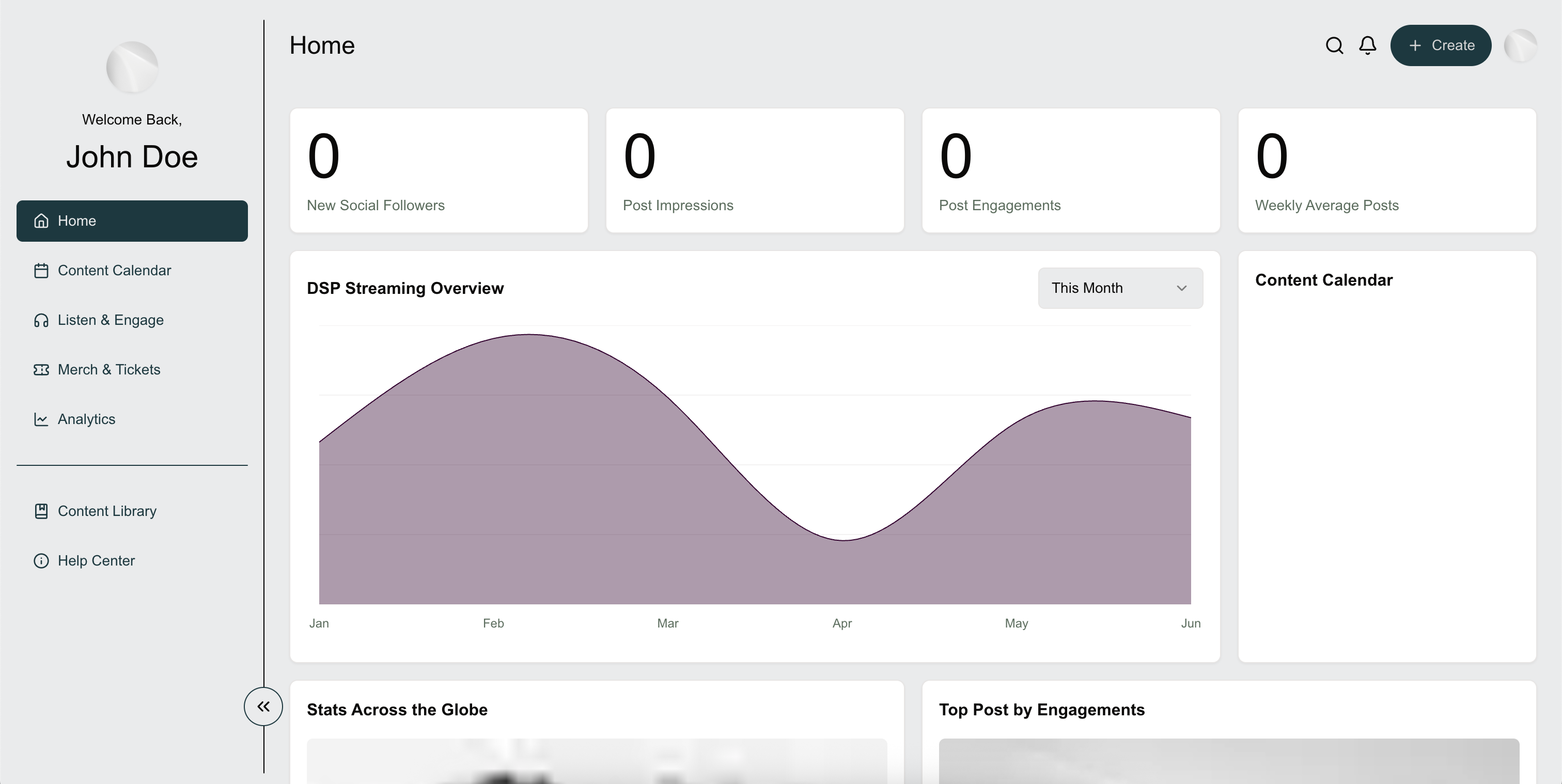 Reimagined a full music analytics platform with modern UI, responsive layouts, and rebuilt core flows.